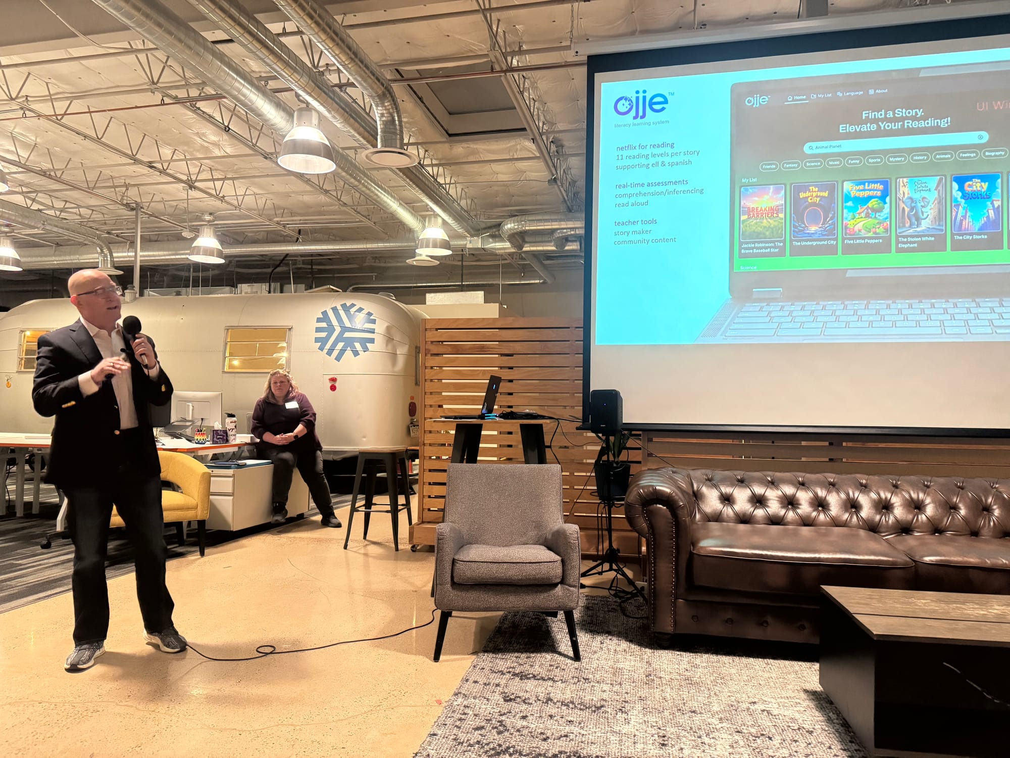 Ojje is an education technology company focused on literacy, with tools designed to help educators meet students at their reading level. The company was presented by founder Adrian Chernoff, with head of partnerships Ben Moultrie weighing in at the Q&A afterward.