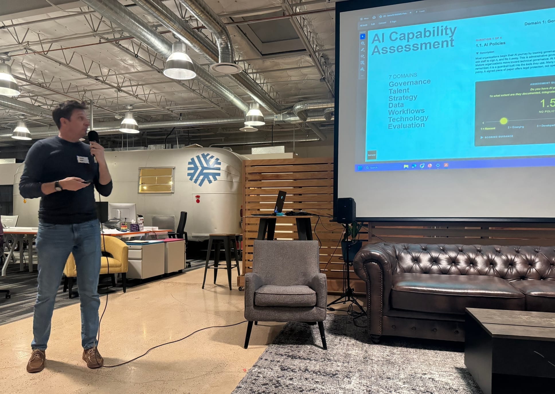 beneAI is a Denver-based consultancy that helps small- and medium-sized mission-driven organizations adopt AI in practical and responsible ways. The company focuses on learning modules, governance and policy support, and strategic planning. Founder Jacob Bielecki was the presenter.