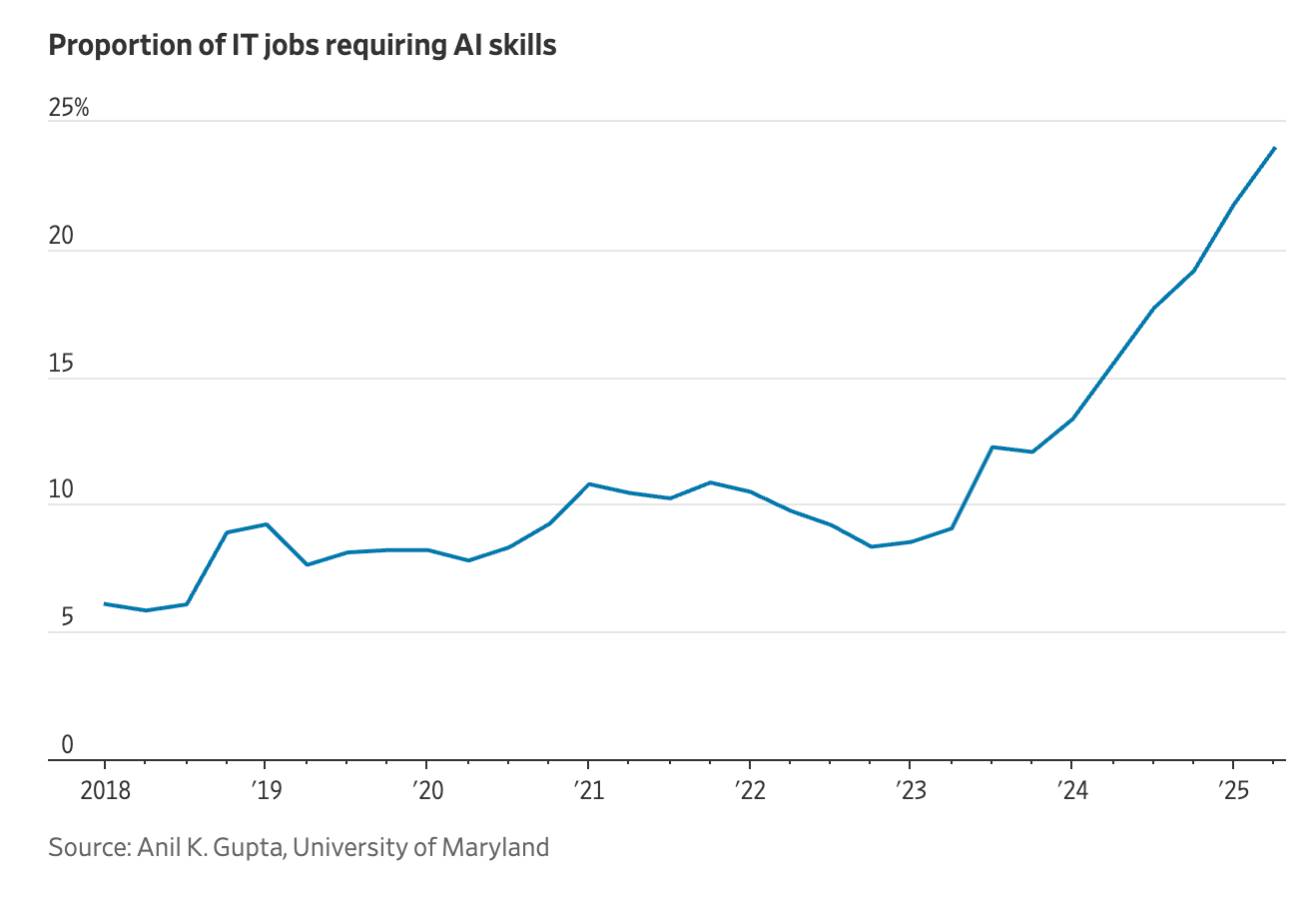 Of course, a few Gen Z’ers are absolutely killing it: The Wall Street Journal had a story last week about some AI-skilled 20-somethings making $200,000 and up. As the article makes clear, “There is a significant salary difference between a machine-learning engineer job and a software-engineer job,” quoting Professor Anil K. Gupta at the University of Maryland’s business school.
